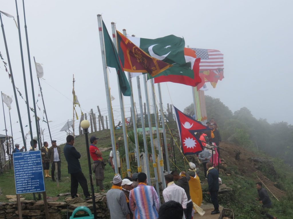 झन्डोत्तोलन गर्दै अध्यक्ष राईले पर्यटकहरूलाई आफ्नो देशको झन्डामार्फत आकर्षित गरेर पर्यटन प्रवर्द्धन गर्न झन्डाहरू राखिएको जानकारी दिनुभयो । आगामी दिनमा यस स्थानमा बाँकी भएका संसारका सबै देशका झन्डा पनि राखिने उहाँले जानकारी दिनुभयो ।
