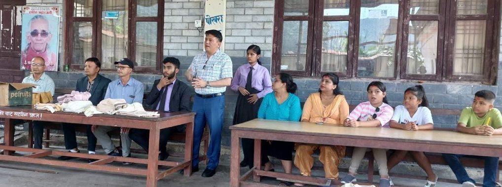 विद्यालयले संस्थागत रुपमै अबका वर्षदेखि वार्षिक २५ हजार रुपैंया वृद्धाश्रममा प्रदान गर्ने घोषणासमेत प्राचार्य सापकोटाले गर्नुभयो ।